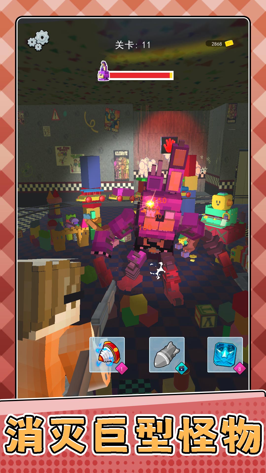 1、进入关卡中,我们需要使用武器,对各种的怪物不断是发起攻击。