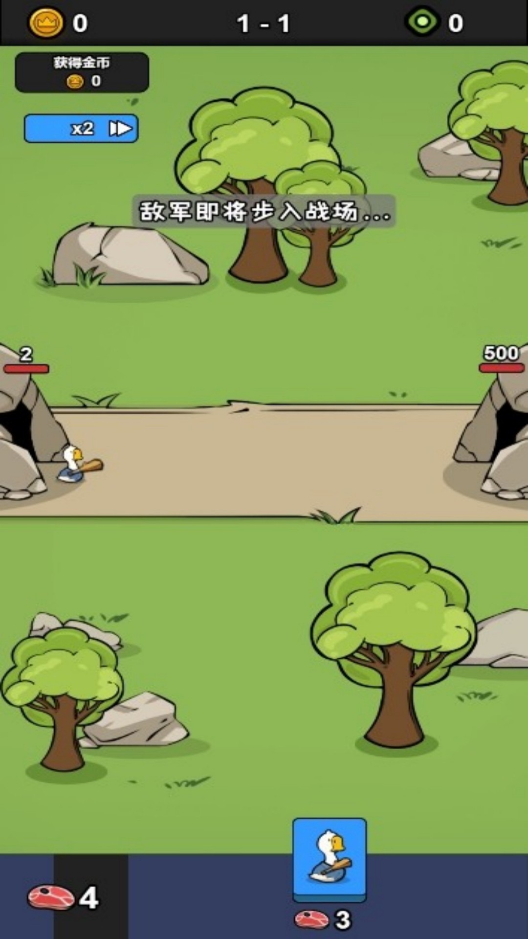 2、3个食物可以获得一个原始人,我们可以点击原始人让它加入到战斗中。