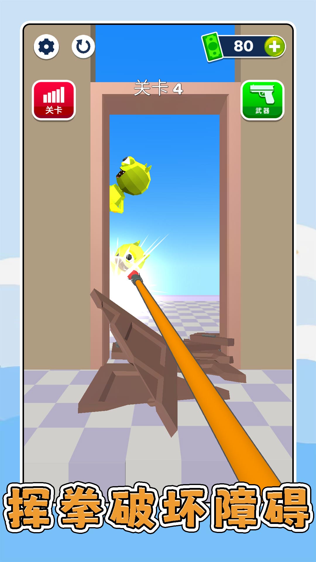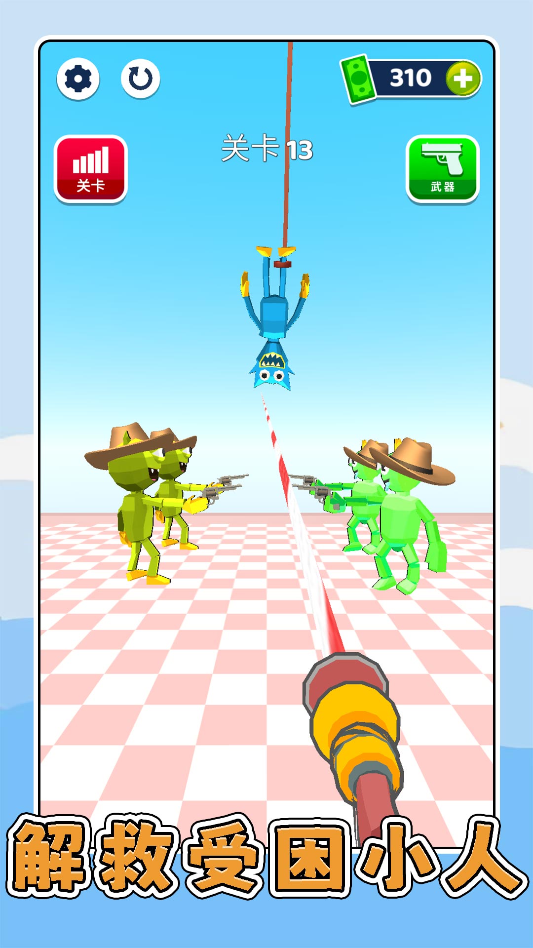 3、点击屏幕上的武器,然后快速的射击,去干掉怪物之后,你就能成功过关。