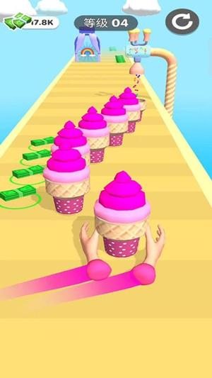 4、抵达终点前需完成指定工序目标,如添加奶油、撒糖珠等,成功制作完整甜品方可通关并获得评分。