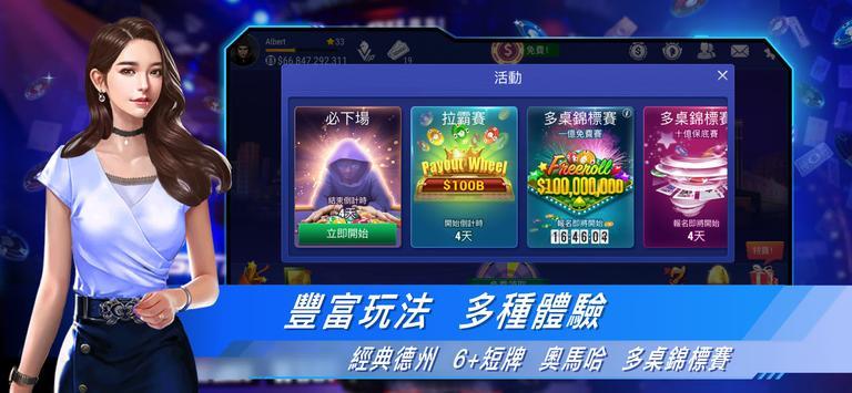手机德州扑扑克app手游这款属于棋牌娱乐类手机游戏,游戏简单易操作,游戏玩家可以简单入门,游戏玩法也是十分的有趣,丰富多彩的游戏感受,也有许多的趣味性的动画场景等候着用户的挑战。当前的版本是v1.4.8,根据用户的反馈,优化了游戏的一些画面和相关操作,有兴趣的小伙伴们一定不能错过了哦,赶紧来下载游戏一起畅玩吧!