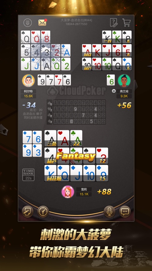 【云扑克】是一款经典的棋牌对战平台,一手棋牌游戏资讯,丰富的棋牌类对战规则,这里总能找到适合你的那款棋牌类对战玩法。游戏竞技性极高,总有一款适合你,更种趣味切磋对局等待你的参与,加入其中赢取丰厚的奖励礼品,一起开始云扑克的竞技之旅吧!