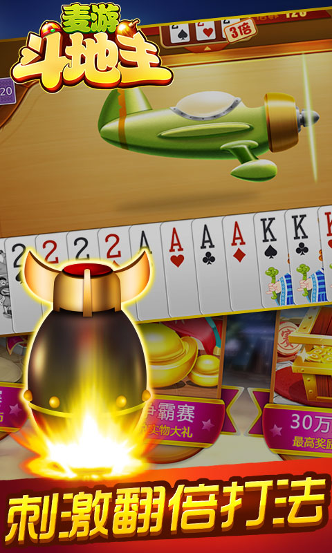 场景化的游戏界面,感受真实的斗地主;丰富趣味的飞机、炸弹动画,为斗地主增添更多欢乐元素