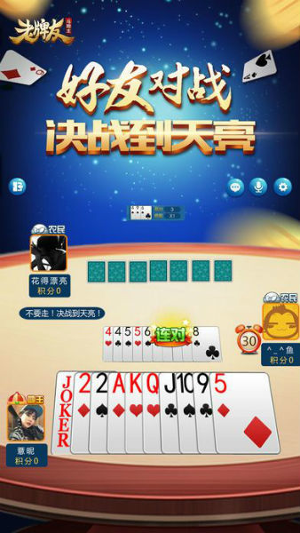 "你准备好挑战全国的斗地主玩家了吗?老牌友斗地主提供了公平的竞技平台,让你随时随地都能感受到紧张刺激的牌局。这里有友好 的社区,让你可以交流心得,提升战术。不再需要寻找三缺一,[标 能:关键词]随时准备为你匹配对手。立即下载老牌友斗地主,开始你的地主之旅吧!"